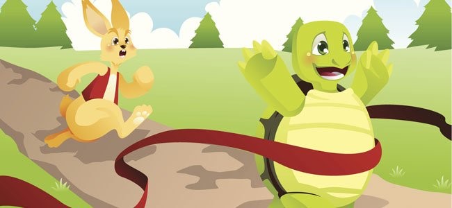 Hare - Hahahaha come on, Turtle please don’t run too fast, because you are going to get tired of going so fast- Of course it was sarcasm.